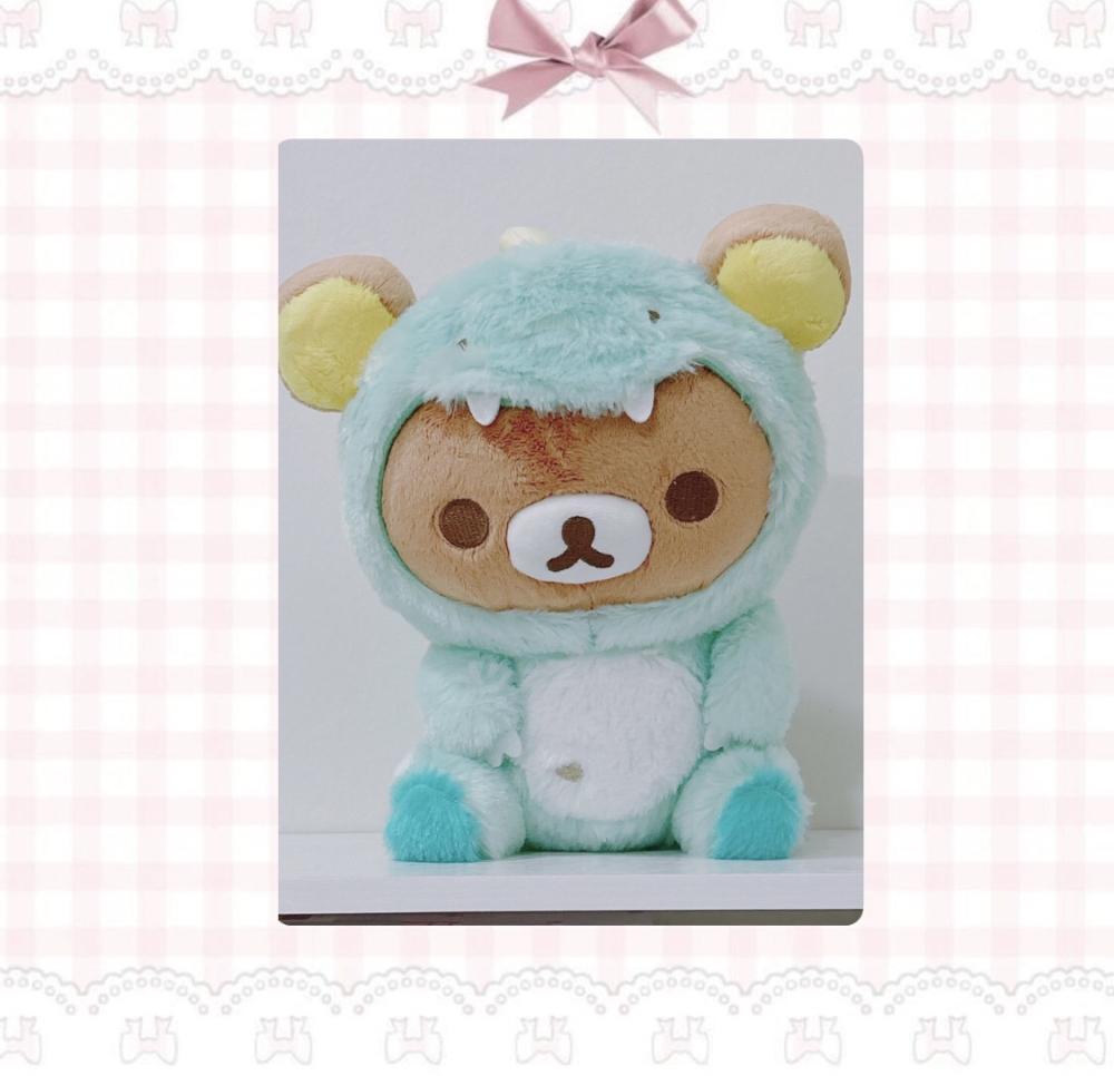 Rilakkuma دمية ريلاكوما الاصلية بزي الديناصور بلون اخضر باستيل لطيف